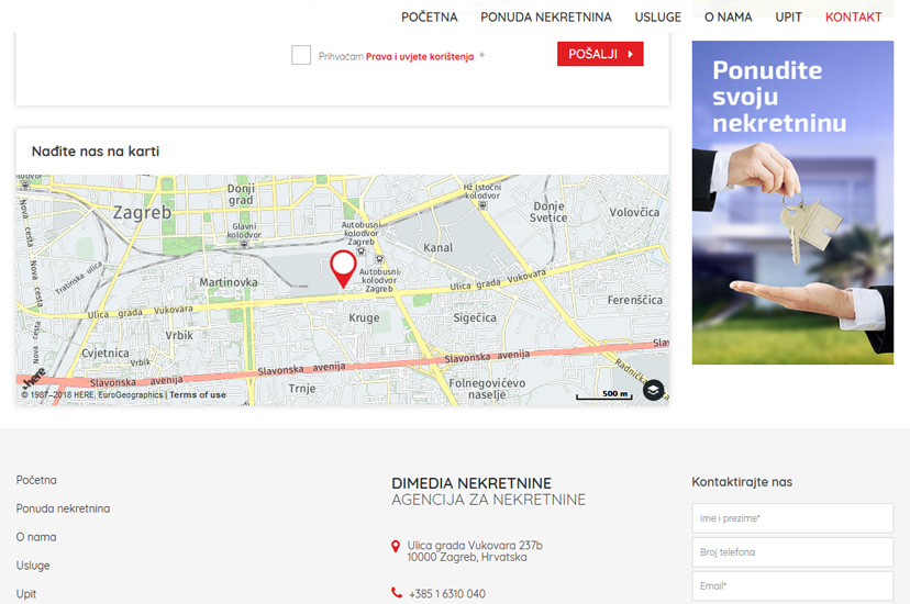 Dimedia je već razvila nekoliko modela prikaza Here maps na raznim tipovima web stranica (korporativne, turističke, agencije za nekretnine) i spremni smo za implementaciju na vašu web stranicu ukoliko to zatražite od nas.